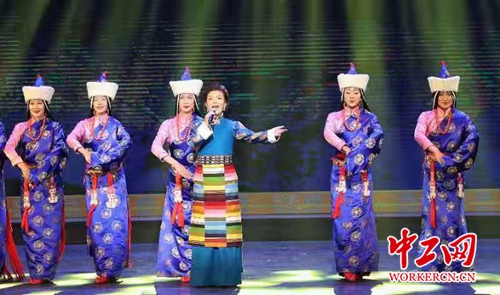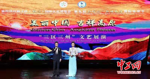 工人日报客户端7月29日电(记者康劲)格桑花开别样红,吉祥鸟鸣幸福来。7月29日晚,《美丽中国 吉祥高原》“三区三州”文艺展演在甘肃省甘南藏族自治州大剧院震撼上演,奏响了第四届丝绸之路(敦煌)国际文化博览会和第九届敦煌行·丝绸之路国际旅游节开幕式的迎宾曲,来自中直文艺院团和四川、云南、西藏、青海、新疆等“三区三州”各省区的省外10个文艺团体、省内11个文艺团体的艺术家们,共同奉献了一场精彩纷呈、极具民族特色的艺术盛宴。