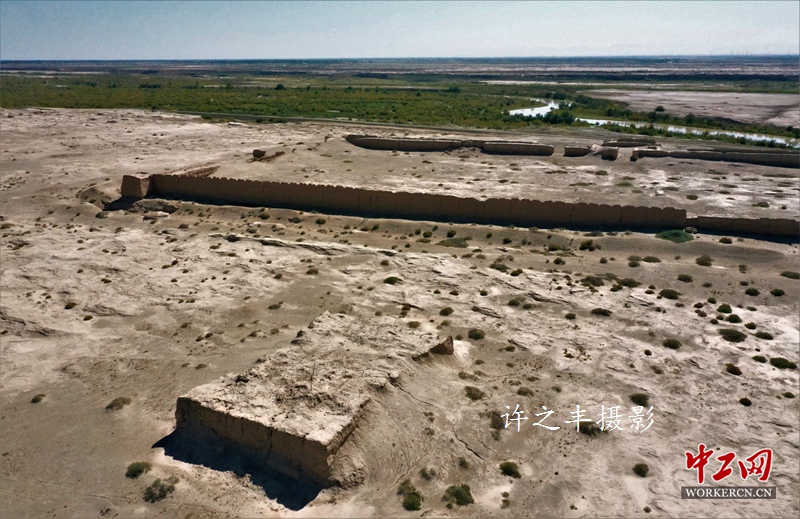 2019年9月30日,沿着古长城西行,走进桥湾城遗址,俗称“康熙梦城”。位于甘肃省瓜州县城东,始建于清雍正十年。是集汉长城、汉墓群、古城址等古文化遗存地。这里东连嘉峪关,南临祁连山,北通蒙古,西达吐鲁番,自古以来就是通往中国东部、西部和北部的交通要道。工人日报-中工网许之丰摄影报道