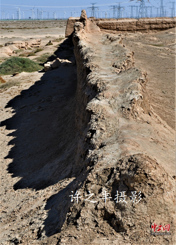 2019年9月30日,沿着古长城西行,走进桥湾城遗址,俗称“康熙梦城”。位于甘肃省瓜州县城东,始建于清雍正十年。是集汉长城、汉墓群、古城址等古文化遗存地。这里东连嘉峪关,南临祁连山,北通蒙古,西达吐鲁番,自古以来就是通往中国东部、西部和北部的交通要道。工人日报-中工网许之丰摄影报道