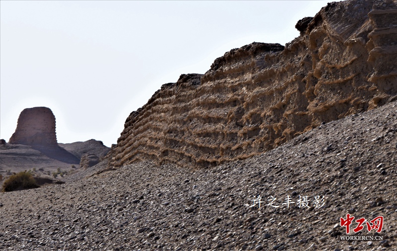 2019年10月1日,沿着古长城西行,走进玉门关遗址,这里地处河西走廊最西端,疏勒河南岸,距敦煌约90公里,西距罗布泊约150公里,四境多戈壁、荒漠、草甸。现遗存包括城址2座,烽燧20座,长城遗址18段。据史书记载玉门关在敦煌郡龙勒县境,为重要的屯兵之地,曾是汉代时期重要的军事关隘和丝路交通要道。工人日报-中工网许之丰摄影报道
