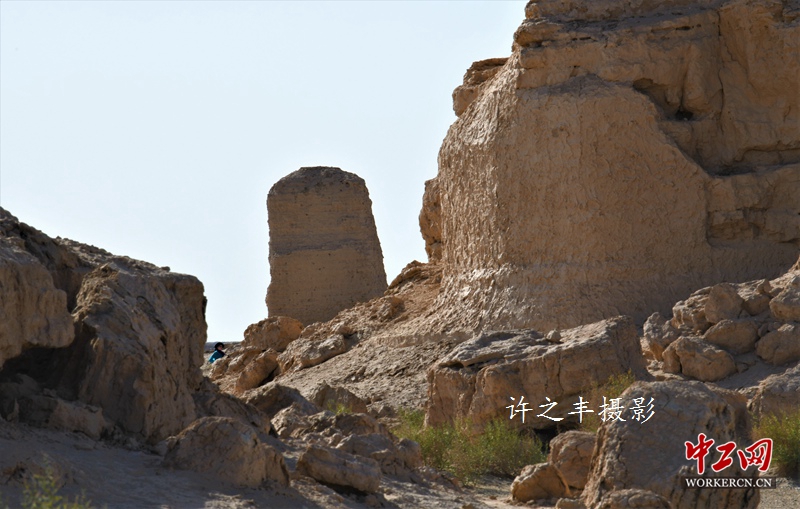 2019年10月1日,沿着古长城西行,走进玉门关遗址,这里地处河西走廊最西端,疏勒河南岸,距敦煌约90公里,西距罗布泊约150公里,四境多戈壁、荒漠、草甸。现遗存包括城址2座,烽燧20座,长城遗址18段。据史书记载玉门关在敦煌郡龙勒县境,为重要的屯兵之地,曾是汉代时期重要的军事关隘和丝路交通要道。工人日报-中工网许之丰摄影报道