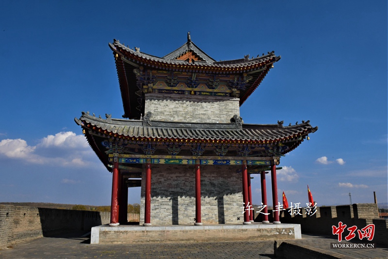 2019年10月10日,走进右卫古城,它位于山西省西北部,北与内蒙古和林格尔县接壤,是山西省的北大门,自古为北方重镇。右卫城下还压着一座城,是春秋战国时期的善无城(今右卫城)。明洪武二十五年(1392年)开始,统治者历时17年,在善无城故址上又筑了这座右卫城,万历三年砖包。右卫城在中国历史上占据其重要的军事地位。图为2019年10月10日的右卫城。工人日报-中工网许之丰摄影报道