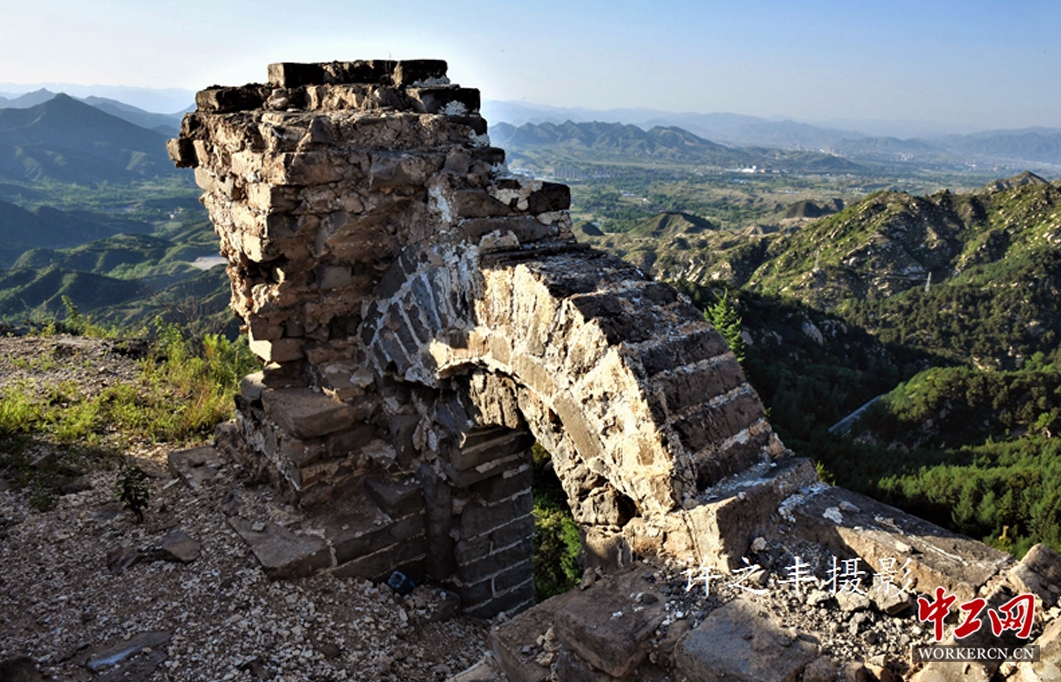 插箭岭长城,位于河北省涞源县境内,据当地传说宋代名将杨彦朗(杨六郎)曾插箭其上而得名。这里位置的重要,关口其险峻,自古战略要地。插箭岭长城是战国时代的建筑,汉代曾维修利用,插箭岭长城碑文记载当年的历史。1937年秋,八路军115师杨成武独立团,曾在插箭岭与日军反复作战。当时的随军记者沙飞,在这一带拍摄了许多战斗生活的珍贵照片。工人日报-中工网许之丰摄影报道