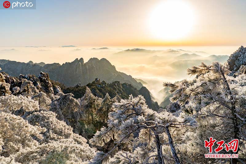 2020年5月4日报道(具体拍摄时间不详),马来西亚摄影师Chookia早前来到位于中国安徽省的黄山,雪后的黄山云白雪白,高洁静谧,如临仙境。