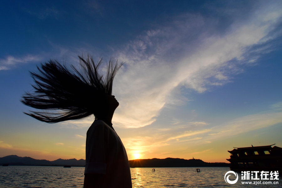 5月3日,杭城开启晴天模式。日落时的西湖,出现了久违的夕阳云天。(浙江在线拍友 里尔 摄)