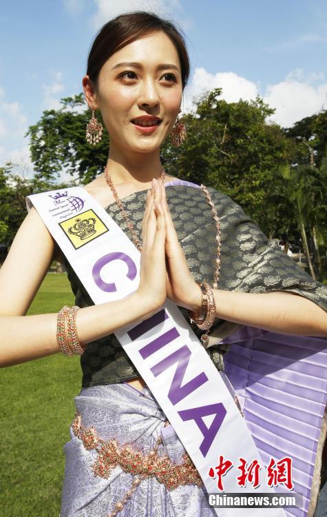 5月10日,2018年国际旅游小姐冠军总决赛在泰国曼谷举行,来自55个国家和地区的参赛佳丽在曼谷参观皇宫、寺庙、文化展览。图为参赛的中国佳丽吴丹亮相曼谷。 中新社记者 钱兴强 摄