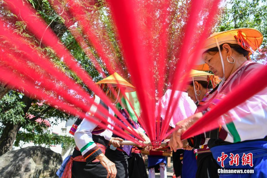 5月21日,云南新平“花腰傣”妇女向海外华文媒体展示拉线织布工艺。当日,来自美国、加拿大、澳大利亚等国家的19家海外华文媒体一行来到云南省新平县嘎洒镇,采访了解当地“花腰傣”族的文化生活。这是“海外华文媒体感知中国行”云南采访活动中的一站,海外华文媒体将深入了解云南当地经济、社会、少数民族文化等方面的发展情况,亲身感受感知改革开放40年与“一带一路”建设中,中国边疆地区的发展变化与取得的成就。 中新社记者 任东 摄