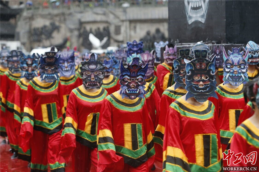 据介绍,农历四月初八是苗祖蚩尤的生日。每年的这一天,彭水自治县的苗族村民都会身着盛装举行仪式来纪念先祖。今天,参加2018全国重点网络媒体重庆的记者、编辑有幸一睹这个极具神秘色彩的苗族特有的蚩尤祭祀仪式。