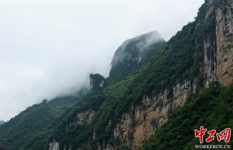 5月23日上午,参加“发现重庆之美:山水之城 美丽之地 2018全国重点网络媒体重庆行”活动的记者、编辑们在酉阳龚滩古镇乘船游览乌江画廊。龚滩古镇位于乌江与阿蓬江交汇处,隔江与贵州沿河县相望,是酉阳“千里乌江,百里画廊”的起点,从龚滩古镇沿乌江溯水而上,经土坨子峡、白芨峡,直至荔枝峡,是乌江百里画廊的精华,以“奇山、怪石、碧水、险滩、廊桥、纤道、悬葬”而著称。清代诗人翁若梅就曾写诗赞叹:“蜀中山水奇,应推此第一”。(中工网记者 谷永光摄影报道)