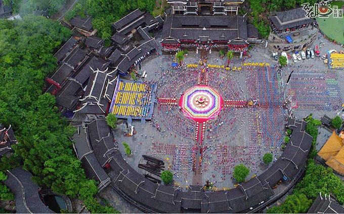 整齐的阵型,划一的动作,层层围绕中心舞台的“娇阿依”们踩着雨点与节奏翩翩起舞,向现场远道而来的游客们诉说着喜悦之情。