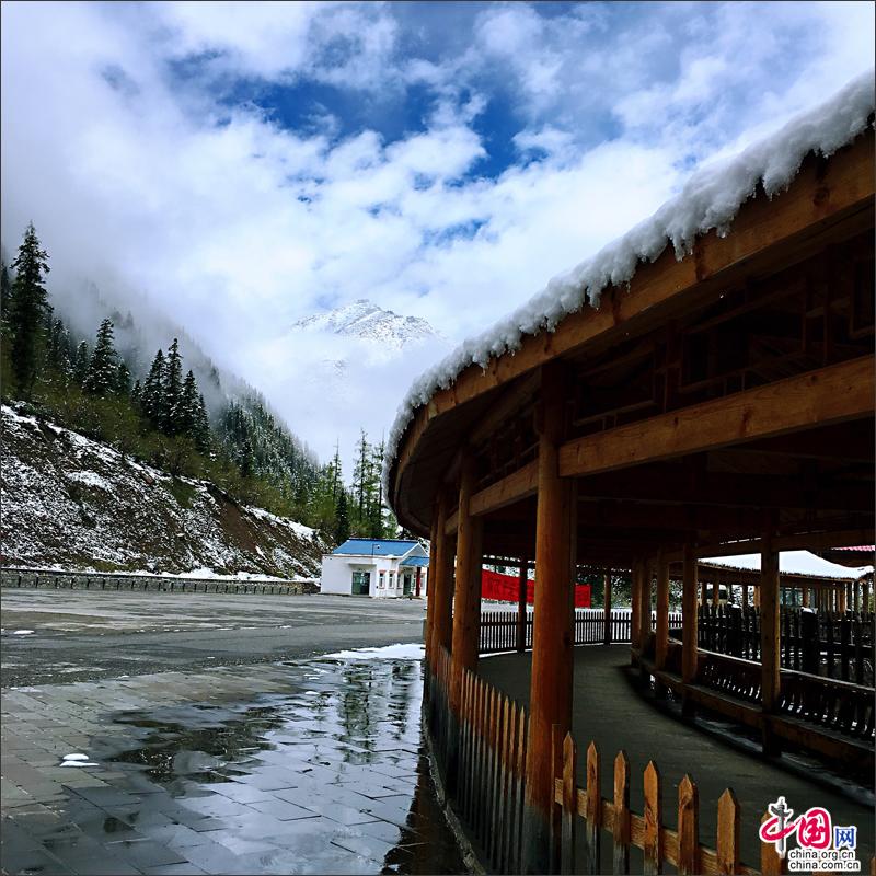 【点睛】当大家都挣扎在酷暑中时,达古冰山却迎来了2天的大雪,将山脚下原本已经转绿的大地又覆盖上层层白雪,宛如毛绒地毯一般,一个圣洁童话世界瞬间呈现在人们的面前。