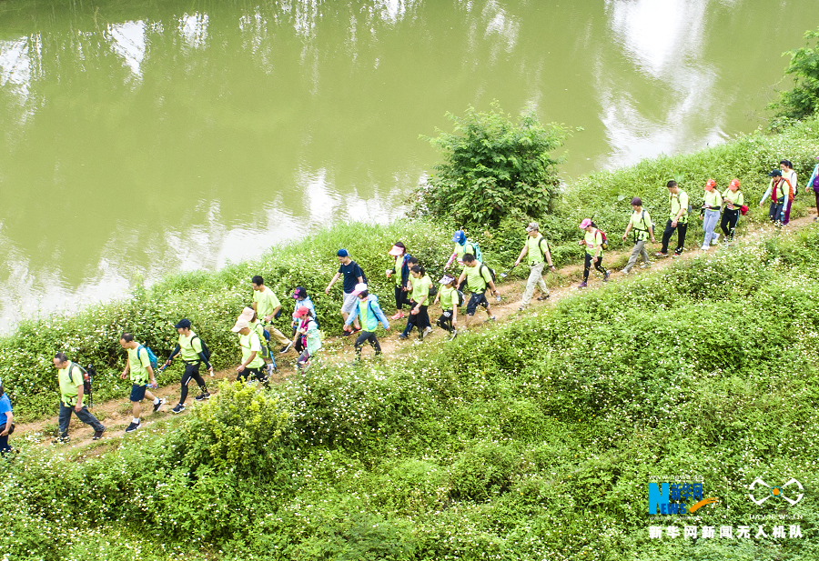 体验组线路总长约6公里,地形较为缓和平坦,轻松休闲登顶。新华网发(巢金红摄)