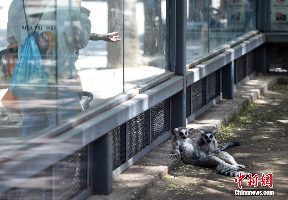 6月5日,北京动物园内的环尾狐猴在阴凉处避暑。当天,北京等地出现高温天气,根据气象预报,未来三天华北、黄淮北部以及陕西关中平原一带,将出现35至38℃、局地40℃的高温天气。中新社记者 侯宇 摄
