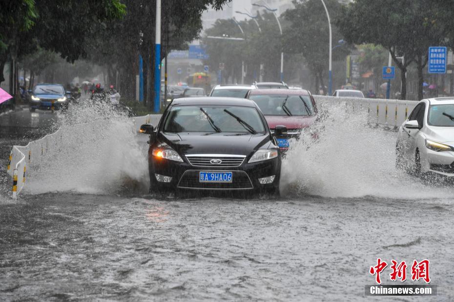 第4号台风携强降雨袭扰海南 海口民众冒雨涉水出行