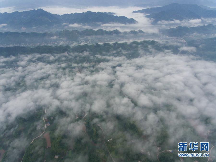 6月6日无人机航拍的蜀南竹海与云海。 新华社记者江宏景摄