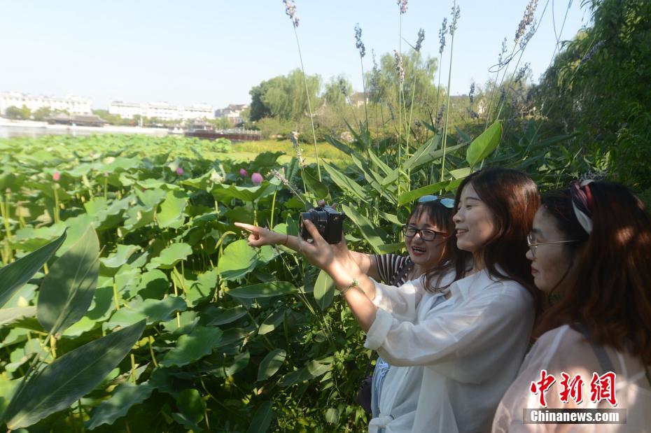 扬州上演小鸟“戏荷图”
