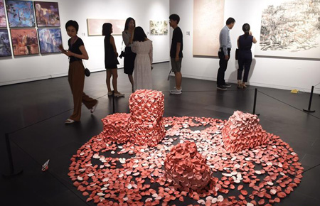 6月13日,观众在拍摄“复兴号”动车组模型。当日,2018北京国际城市轨道交通展览会开幕,展会以“拥抱城轨时代”为主题,近200家相关机构和企业展示了城市轨道交通领域的新技术和新产品。新华社发(陈晓根 摄)