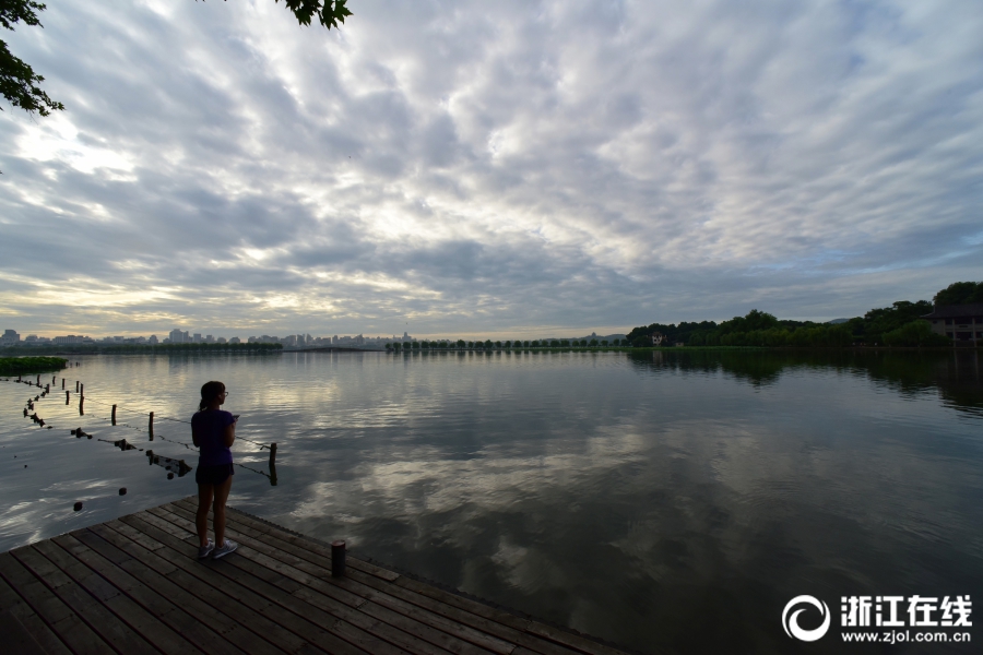 6月19日早晨,杭州西湖上空厚云密布,梅雨季也即将开启。(浙江在线拍友 里尔 摄)