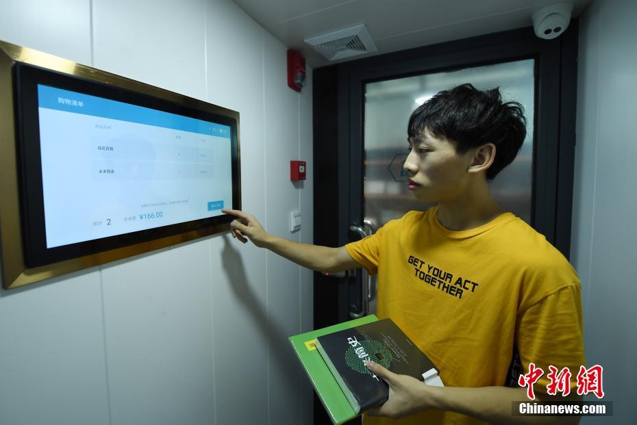 6月21日,一位读者正在进行无感支付。近日,浙江杭州开出一家24小时营业的智能茶书馆,购书者刷脸认证后,可实现无感支付。中新社记者 王刚 摄