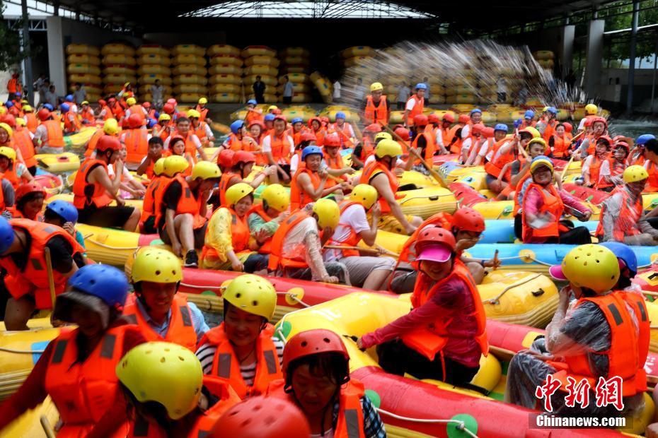 高温难耐 民众漂流河道“下饺子”