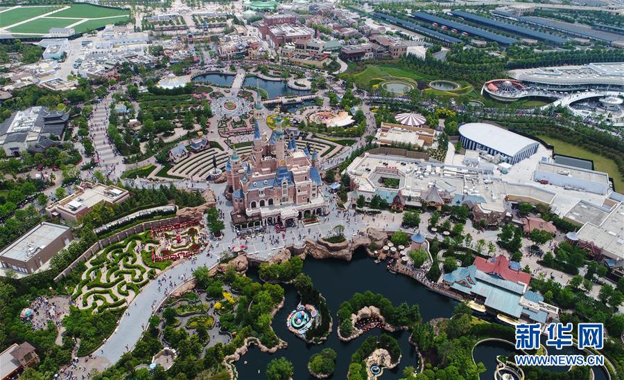 这是2017年5月19日无人机拍摄的上海迪士尼乐园一景。
