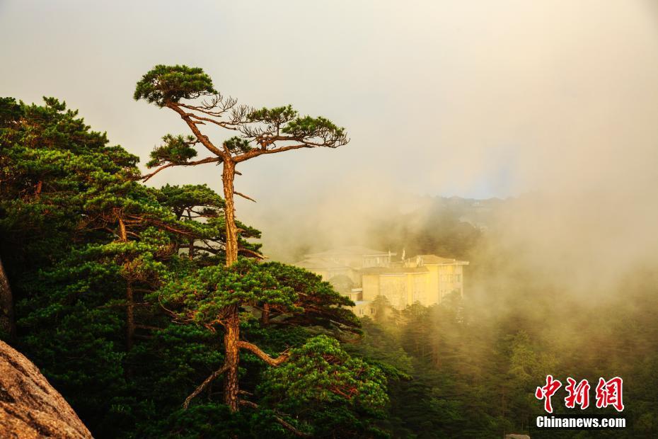 6月29日傍晚,安徽黄山风景区雨后出现云海和晚霞景观,宛如壮丽画卷。中新社发 方立华 摄