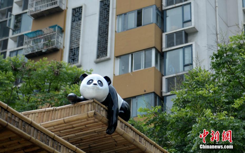 成都北三环绿道上一只“熊猫”趴在屋顶上。刘忠俊 摄