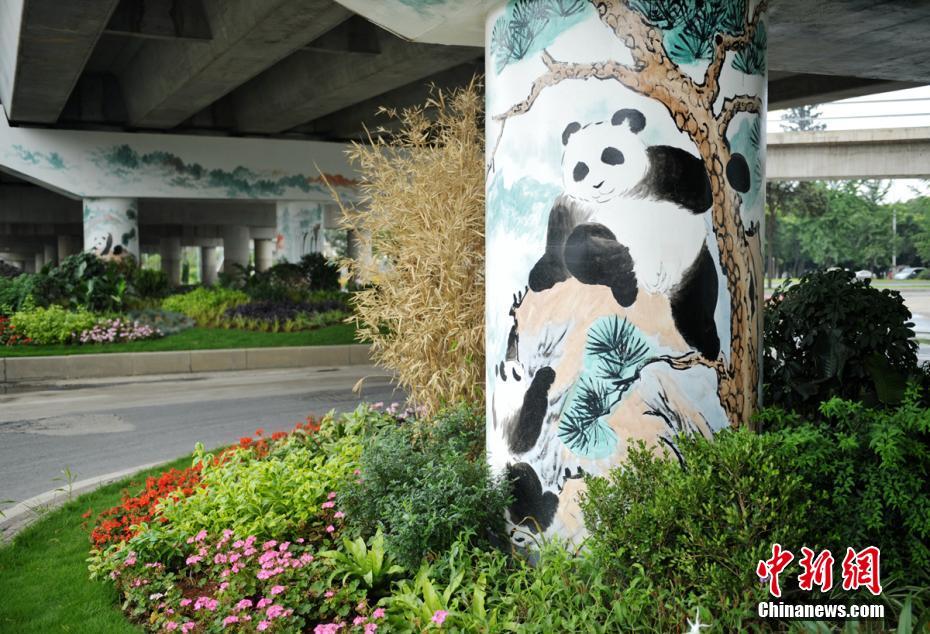 成都北三环立交桥下绘制的“熊猫”图案。刘忠俊 摄