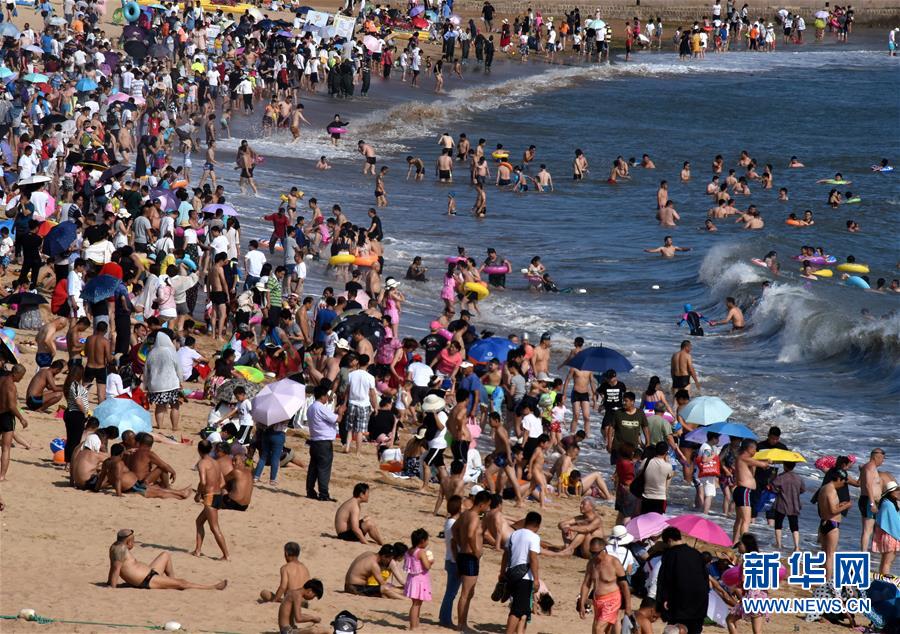7月1日,人们在青岛第一海水浴场海滩上游玩。 新华社记者 李紫恒 摄