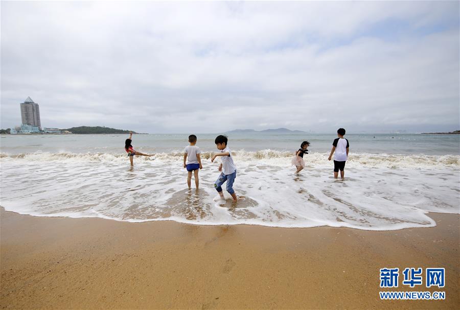 7月1日,游客在山东省青岛市第一海水浴场戏水。 新华社发(黄杰显 摄)