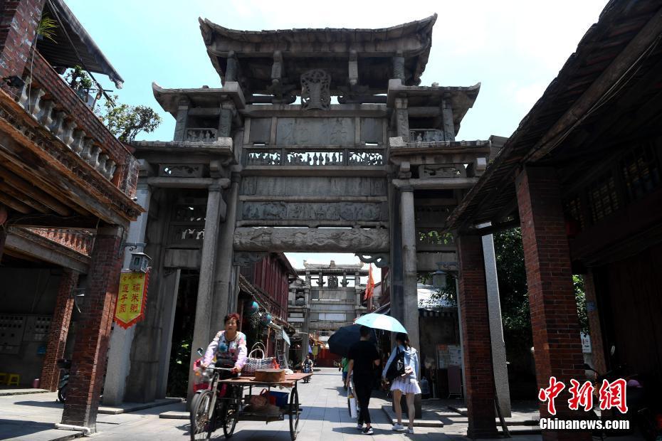 图为在漳州古城香港路上两座明代石牌坊“尚书探花”和“三世宰贰”,工艺精湛,是全国重点保护文物。 张斌 摄