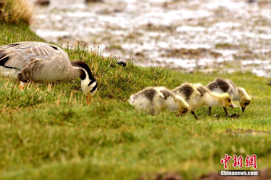 藏区摄影爱好者镜头下的“母子”斑头雁