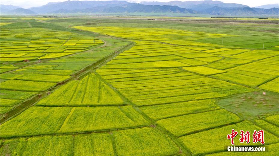 祁连山下油菜花海勾勒田园之美