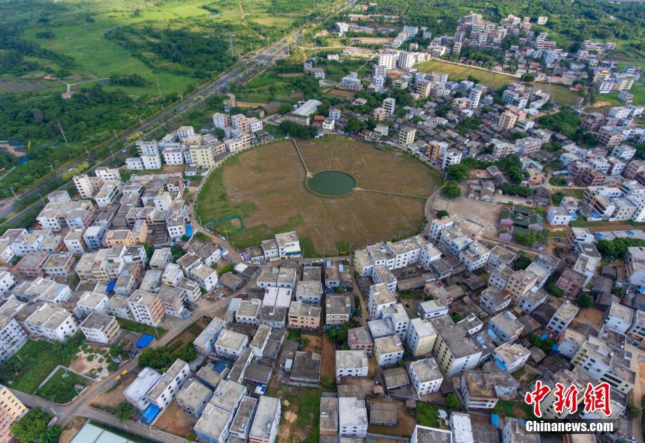 7月8日,记者通过无人机航拍位于海口长流镇文毓村。这个已经有400多年历史的古村落,因村庄规划布局与“太极图”相似而闻名。 中新社记者 骆云飞 摄