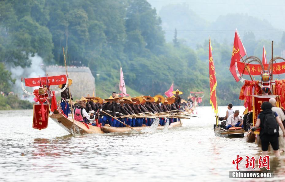 7月8日,贵州台江,一艘等待竞赛的独木龙舟。当日是农历五月二十五,贵州省黔东南苗族侗族自治州台江县清水江畔施洞镇,来自周边苗族村寨的苗族民众身着节日盛装,欢聚一堂,赛龙舟欢庆传统节日“独木龙舟节”,共同祈愿风调雨顺、五谷丰登。独木龙舟节2008年被列入国家级非物质文化遗产名录。中新社发 黄晓海 摄