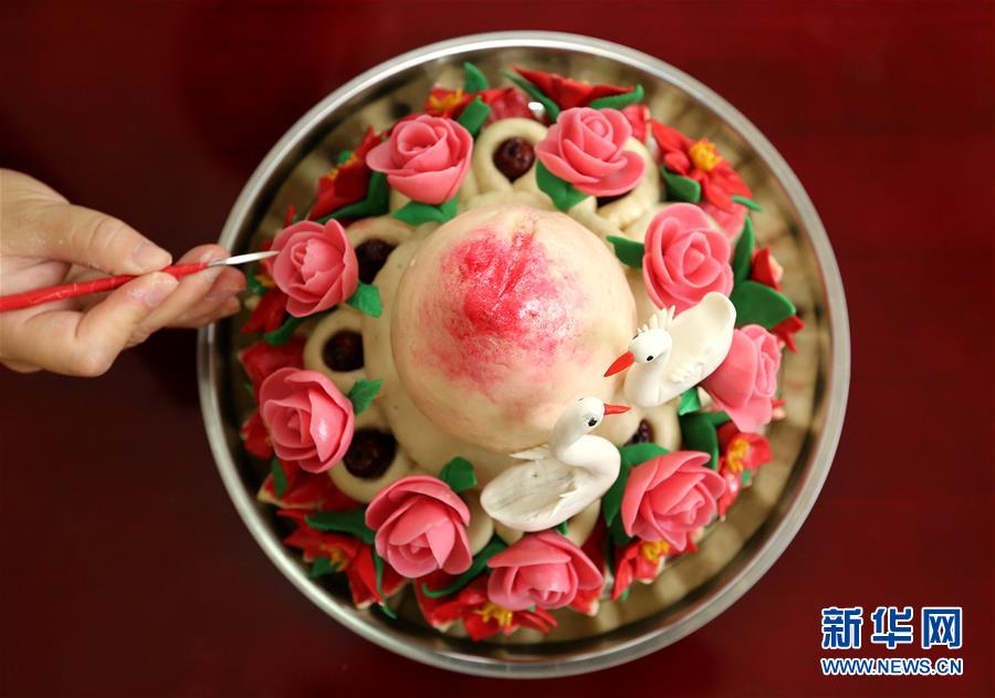 这是山东省枣庄市非物质文化遗产“鲁南花馍”传承人王欣制作的“鲁南花馍”(7月8日摄)。