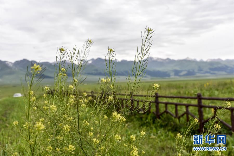 那拉提“空中草原”上盛开的黄色野花(7月8日摄)。