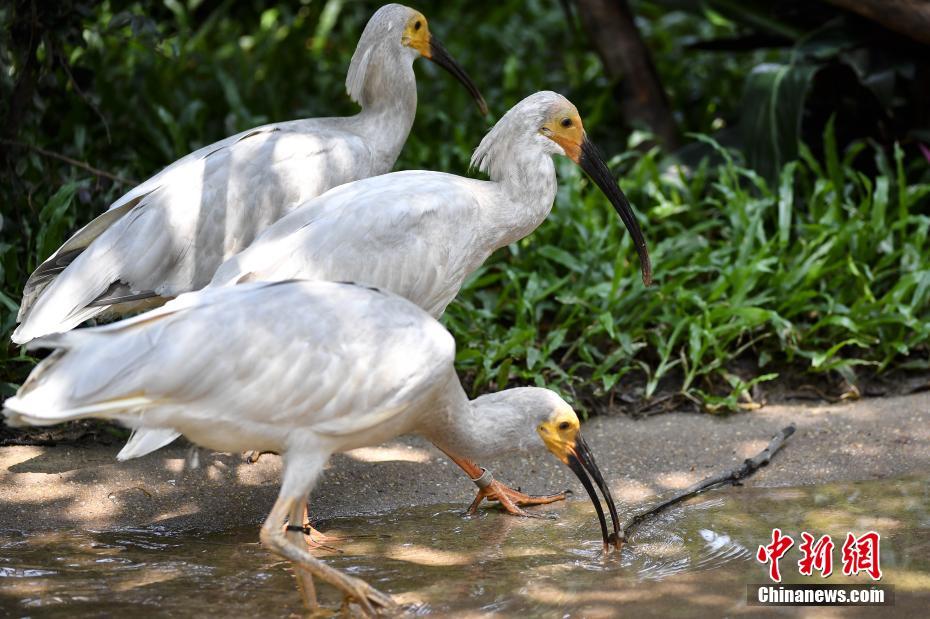 7月11日,由广州长隆华南珍稀野生动物物种保护中心繁育的8只朱鹮幼鸟首次与公众见面。朱鹮,素有“东方宝石”的美誉,被列入《世界自然保护联盟》(IUCN)2012年濒危物种红色名录。目前,广州长隆华南珍稀野生动物物种保护中心内的朱鹮已繁育至第三代,种群内朱鹮数量达150余只。中新社记者 陈骥旻 摄