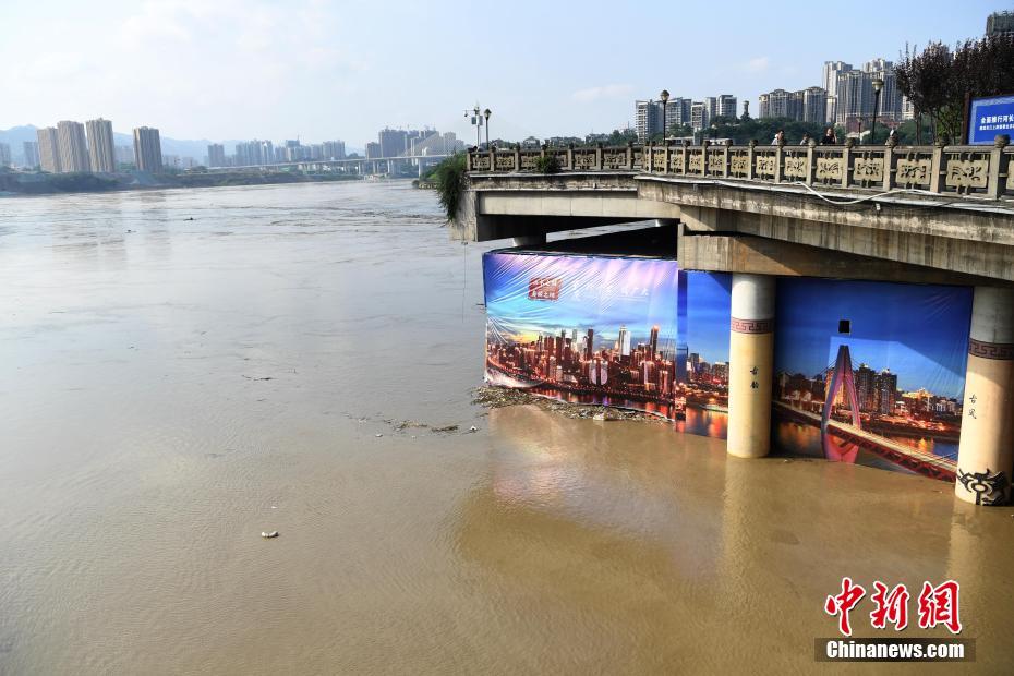 图为嘉陵江水位持续上涨即将抵达桥底。陈超 摄