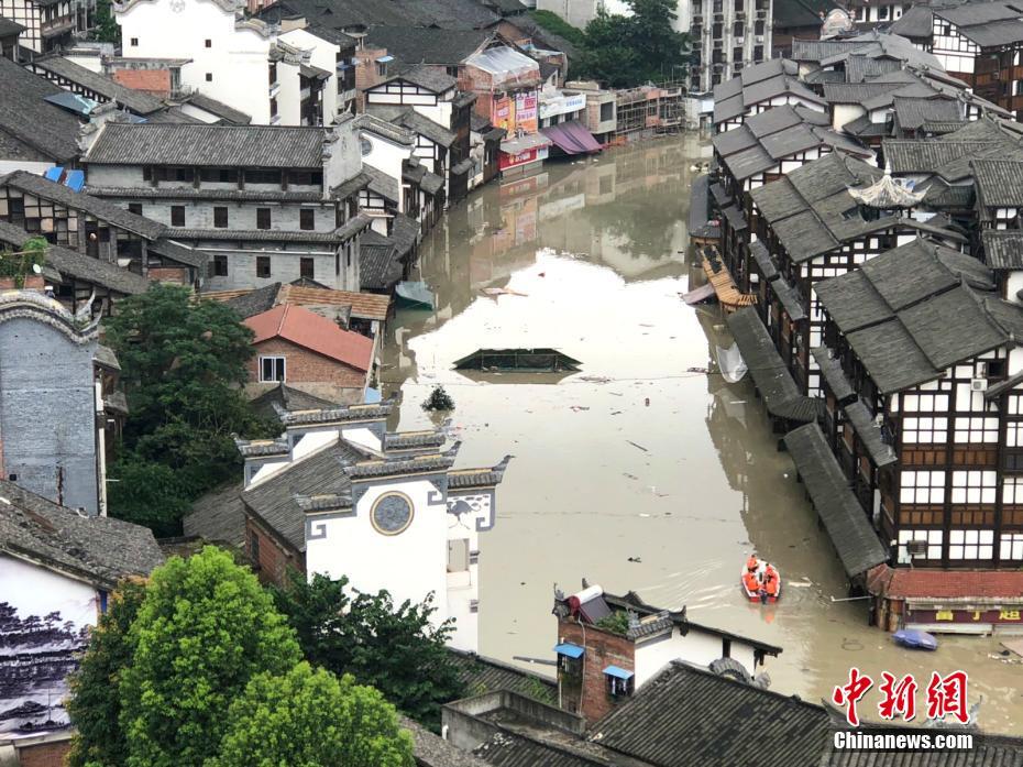 7月12日,受四川涪江上游连续强降雨影响,涪江水位持续上涨,洪峰过境重庆市铜梁区沿江区域,造成位于铜梁区安居镇的安居古城被淹,只见古城核心区周边几条街的门面上铺都已经进水,千年古城秒变“水城”。柏强 摄
