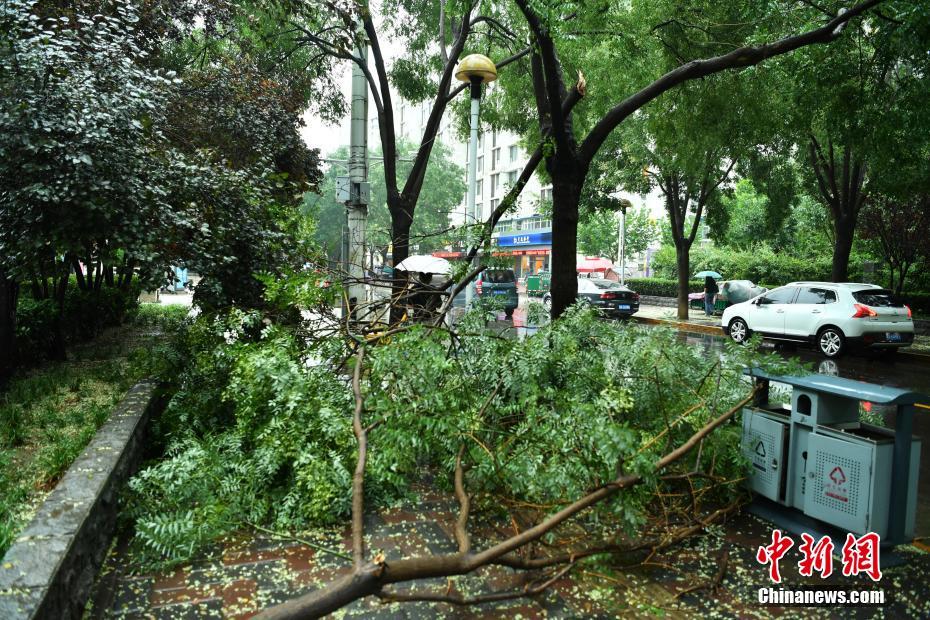 7月16日下午,河北石家庄街头,树枝被暴风雨折断。当日,该省气象台发布暴雨蓝色预警,承德、雄安新区、廊坊北部、石家庄中西部、邢台西部等多地遭受暴雨袭击。中新社记者 翟羽佳 摄