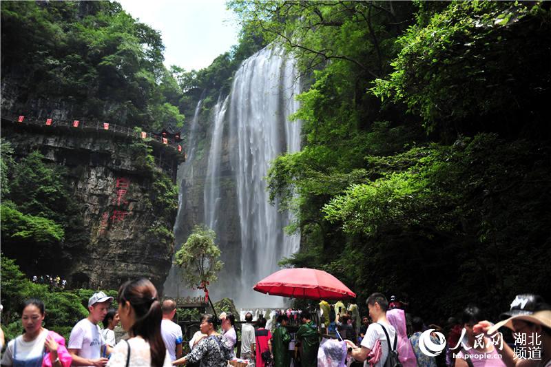 人民网宜昌7月16日电 盛夏时节,湖北省宜昌市夷陵区黄花镇“三峡大瀑布”景区的山水“氧吧”成为游客避暑度夏的好去处,风景区内青山绿水、清风蝉鸣、竹筏清泉,散发着峡谷的美,清澈的水、清凉的风和静谧的森林,吸引各地游客纷至沓来“森呼吸”,体验高浓度负氧离子带来的“森林浴”,尽情享受夏日洗眼、洗肺、洗心的清凉之旅。