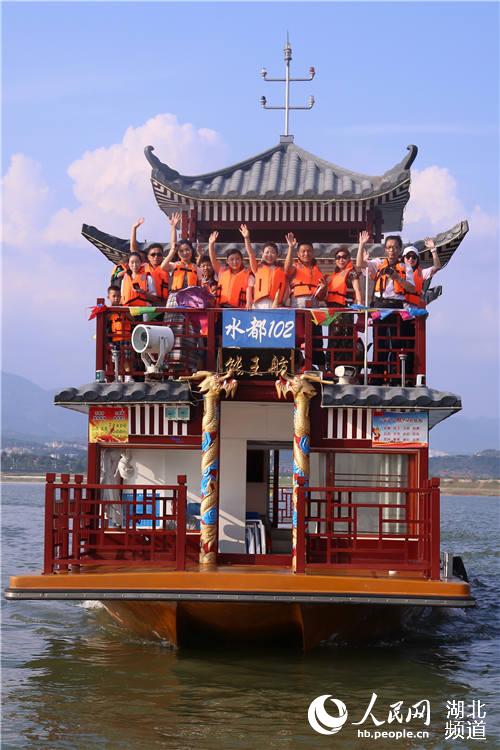 7月14日,在湖北省十堰市郧阳区牛头岭码头,游客准备乘坐游艇游览汉江。