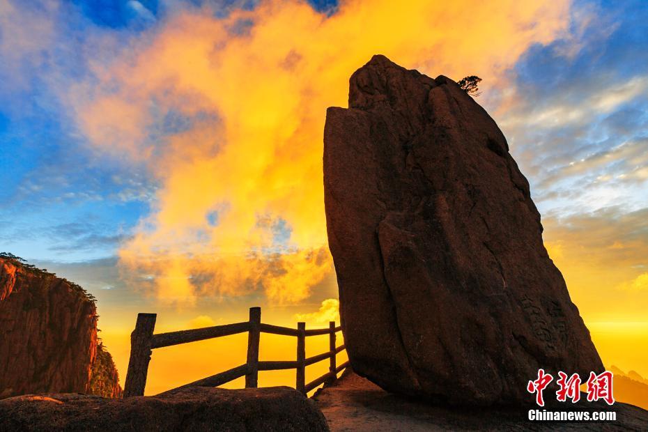 7月16日,安徽黄山风景区现云海佛光和晚霞景观。当天下午,“白如银、软如棉、飘如纱、动如烟”的黄山云海,时而狂放汹涌,时而清纱漫舞,漂浮在青松黛石之间。佛光在朦胧的山体中闪现,愈显黄山奇峻和瑰丽。霞光映照,群峰熠熠生辉,云天流光溢彩,如同一幅幅色彩丰富的画卷铺展开来,现场的游客和摄影爱好者纷纷用相机或手机记录一幕幕精美的画面。叶永清 摄