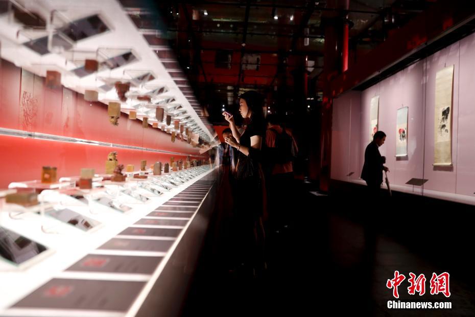 7月17日,由北京故宫博物院与北京画院合作举办的“清平福来——齐白石艺术特展”在北京故宫午门和西雁翅楼展厅开展,展览从两家机构珍藏的齐白石作品中精选出200余件绘画、篆刻、文献,以“天道酬勤”、“扶梦还乡”、“老当益壮”、“白石篆字”4个部分,全方位、多角度地呈现“人民艺术家”齐白石老人勤勉艰辛的探索,心系故土的乡愁,老而不颓的豪情,刀锋印痕的心相。中新社记者 杜洋 摄