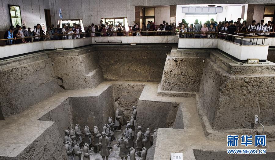 7月17日,游人在秦始皇兵马俑博物馆三号坑参观。 新华社记者 刘莲芬摄