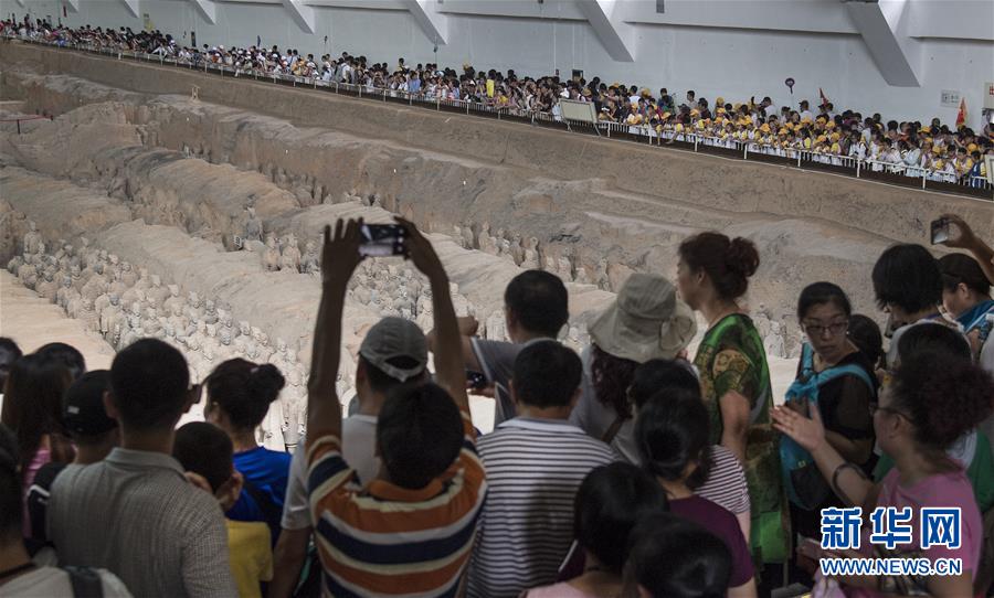 7月17日,游人在秦始皇兵马俑博物馆一号坑参观。 新华社记者 陶明摄