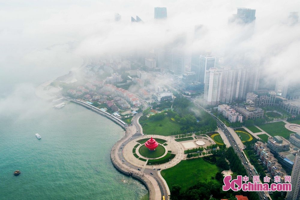 五四广场上空漂浮的层层薄雾让眼前的美景如梦如幻。