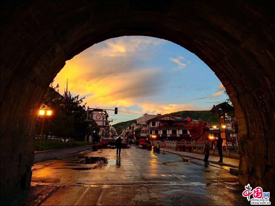 松潘古城彩虹晚霞缀空美不胜收 醉了游人心田