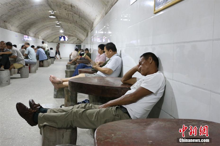广西柳州持续高温 民众防空洞避暑纳凉